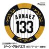 阪神タイガース、ジーン・アルエナス選手のゴルフ用カジノチップマーカー。表面は各選手の背番号、裏面は90周年ロゴのデザインです。阪神タイガース承認。