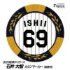阪神タイガース、石井大智選手のゴルフ用カジノチップマーカー。表面は各選手の背番号、裏面は90周年ロゴのデザインです。阪神タイガース承認。
