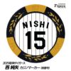 阪神タイガース、西純矢選手のゴルフ用カジノチップマーカー。表面は各選手の背番号、裏面は90周年ロゴのデザインです。阪神タイガース承認。