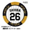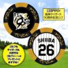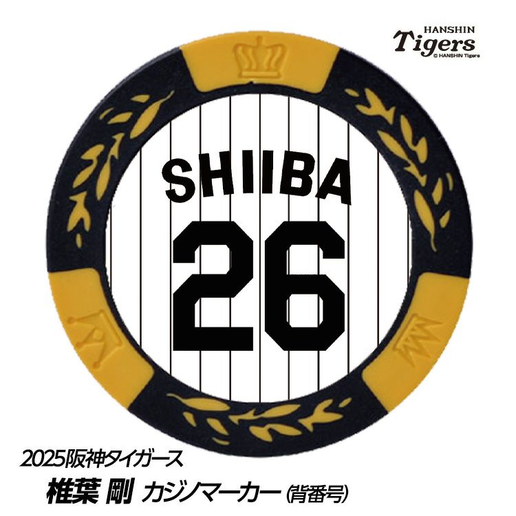 阪神タイガース、椎葉剛選手のゴルフ用カジノチップマーカー。表面は各選手の背番号、裏面は90周年ロゴのデザインです。阪神タイガース承認。