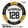阪神タイガース、 嶋村麟士朗選手のゴルフ用カジノチップマーカー。表面は各選手の背番号、裏面は90周年ロゴのデザインです。阪神タイガース承認。