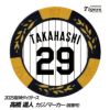 阪神タイガース、高橋遥人選手のゴルフ用カジノチップマーカー。表面は各選手の背番号、裏面は90周年ロゴのデザインです。阪神タイガース承認。