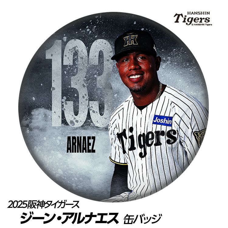阪神タイガース、ジーン・アルエナス選手の缶バッジ。阪神タイガース承認。