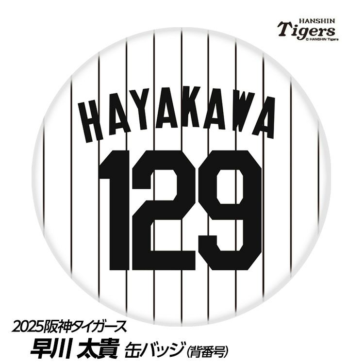 阪神タイガース、早川太貴選手の缶バッジ。阪神タイガース承認。