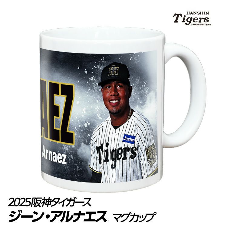 阪神タイガース、ジーン・アルエナス選手のマグカップ。阪神タイガース承認。