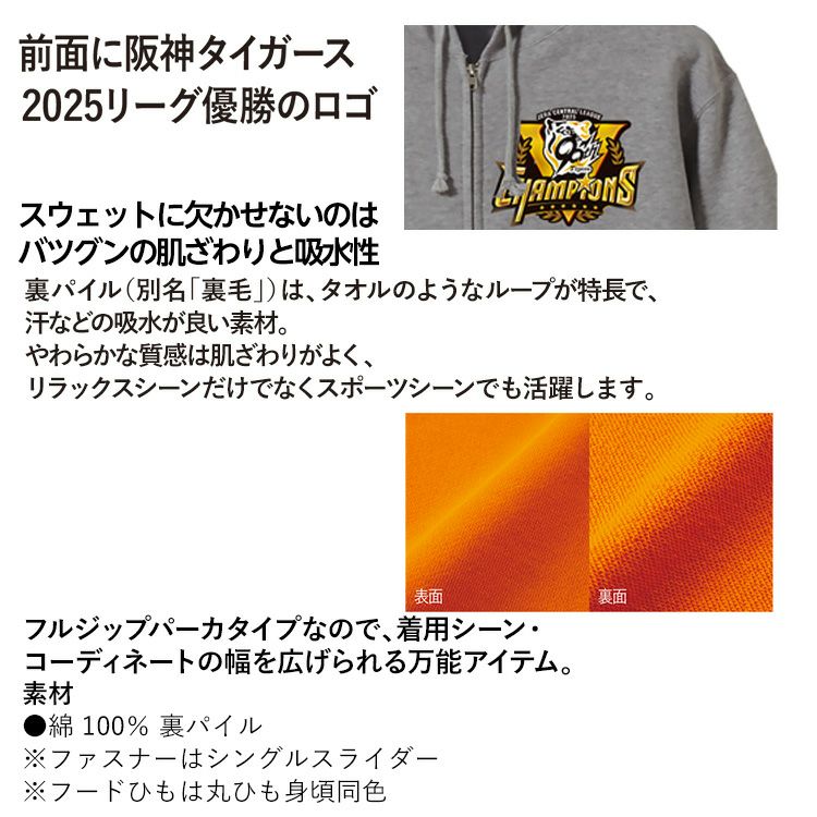 阪神タイガース2025年セ・リーグ優勝記念パーカー、当店限定モデル 阪神 優勝グッズ 2025 リーグ優勝 パーカー フーディー