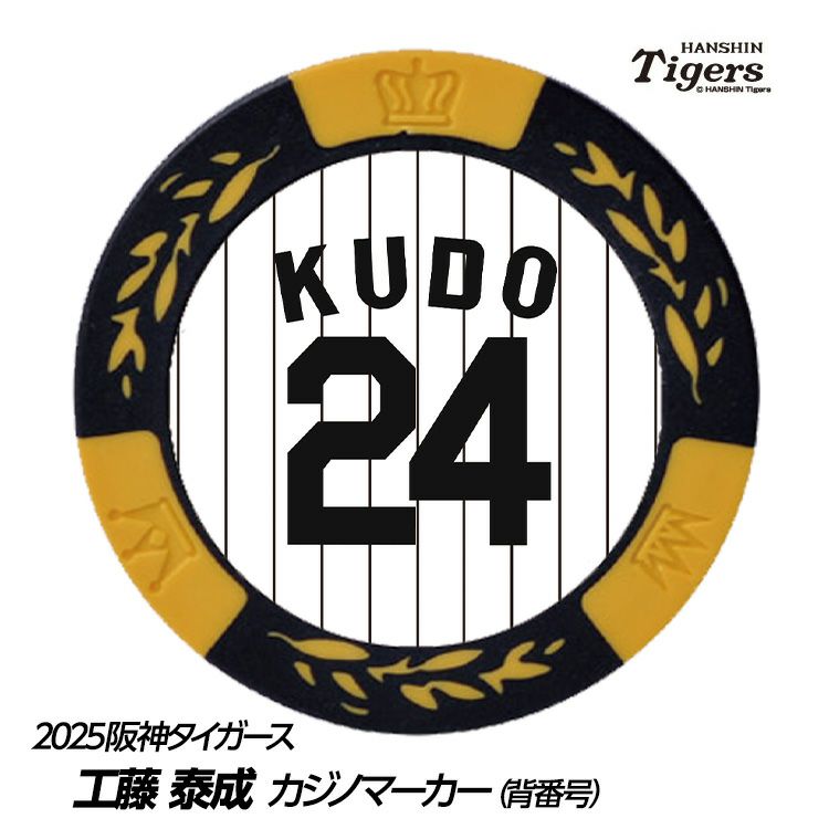 阪神タイガース、工藤泰成選手のゴルフ用カジノチップマーカー。表面は各選手の背番号、裏面は90周年ロゴのデザインです。阪神タイガース承認。