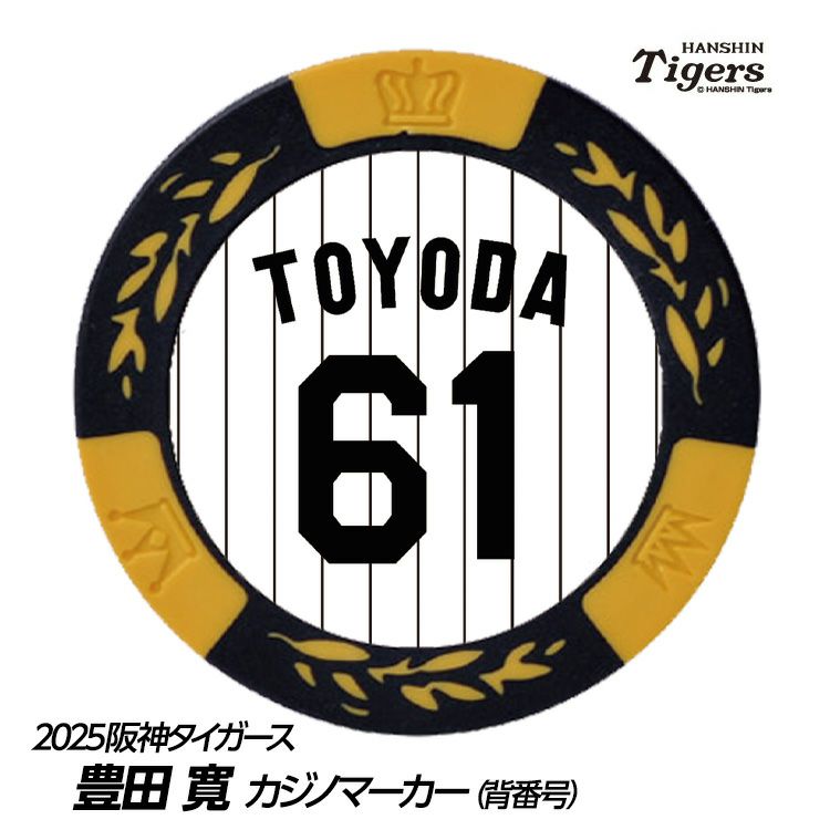 阪神タイガース、豊田寛選手のゴルフ用カジノチップマーカー。表面は各選手の背番号、裏面は90周年ロゴのデザインです。阪神タイガース承認。